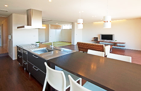 特に都心部などでは住宅が密集しているため、「プライベートな空間」を確保する事がより難しくなってしまいます。しかしクレエでは、外部からの「視線」を遮断する設計を行う事で「プライベート空間」と「ゆったりくつろげる開放的な空間」を両立させて「ゆったりと落ち着ける空間」をお客様にご提案させていただきます。さらに照明の使い方や建具の形・金物はもちろん、コンセントの位置など細部にまでこだわる事で、デザインされた空間と機能性が高い住みやすい空間が両立した住宅をご提案させていただきます。
